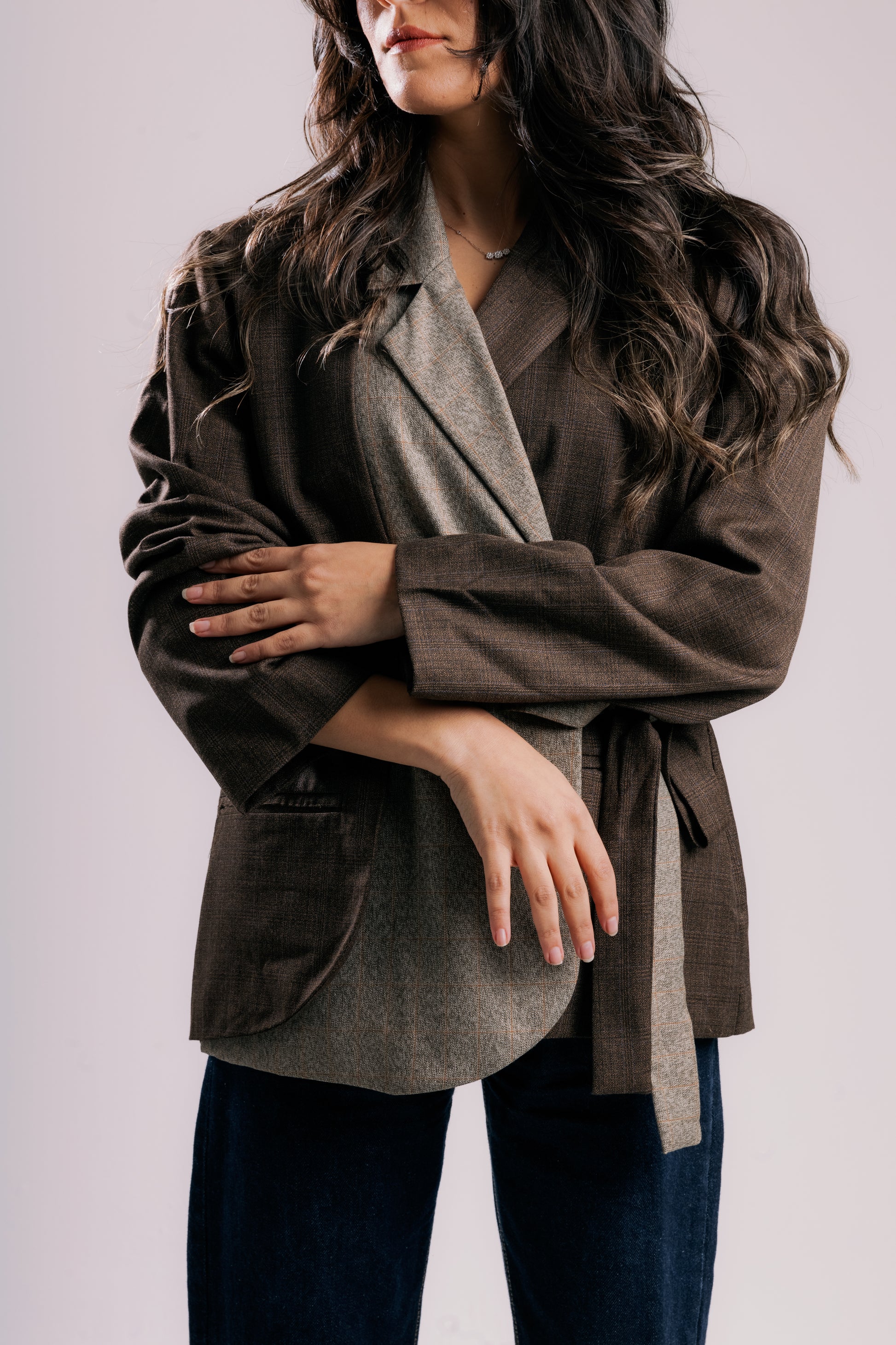 The Twofold blends heritage checks with modern tailoring. Its asymmetric lines and dual patterns reflect strength in balance; tailored yet free, bold yet subtle. Perfectly at home over denim or silk, this blazer embodies Dalamo’s essence: duality made wearable.